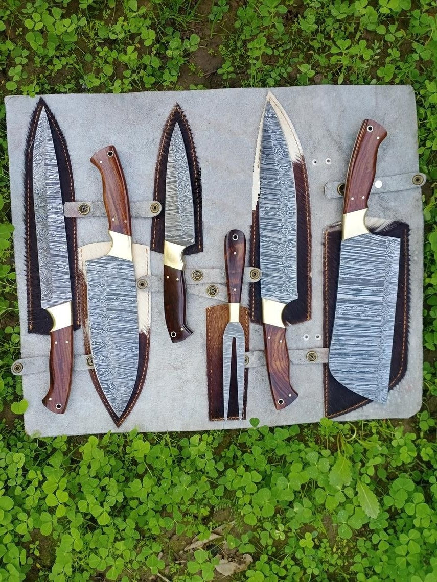 Custom Handmade Forged Damascus Steel Kitchen Chef Set