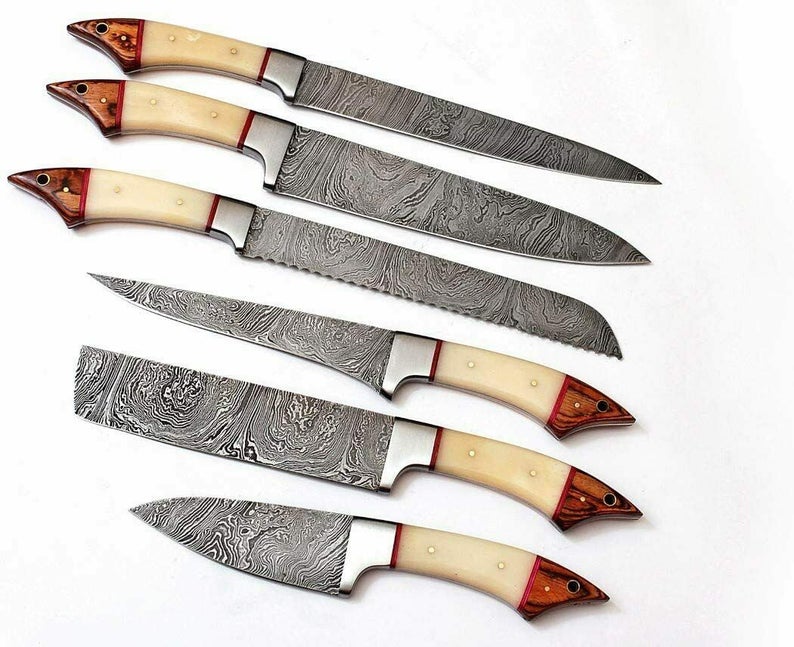 Custom Handmade Real Damascus Knife – 13” with Camel Bone or Pakka Wood Handle, Steel Bolster & Leather Roll Kit