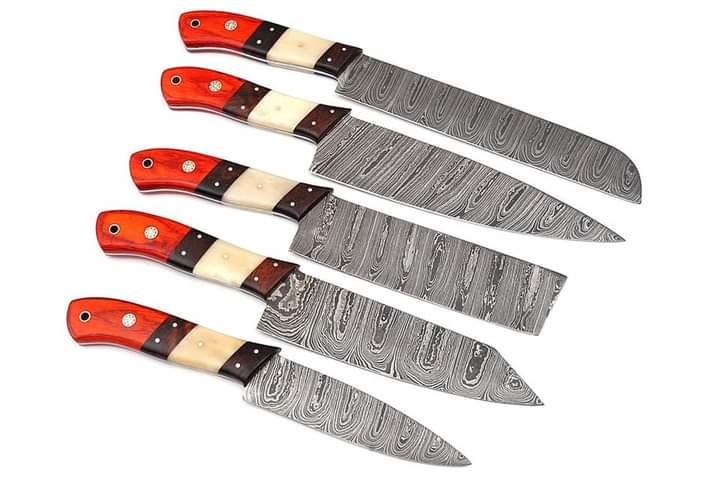 Choose from three stunning handle options—Camel Bone, Pakka Wood, or Rosewood—each paired with a sturdy bolster for balance and a secure grip. The intricate Damascus patterns make every blade a unique work of art, while the full tang construction ensures strength and longevity.