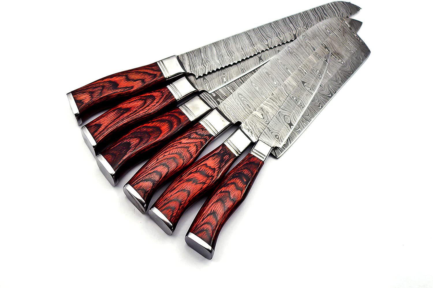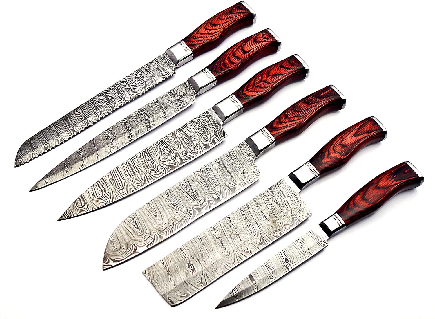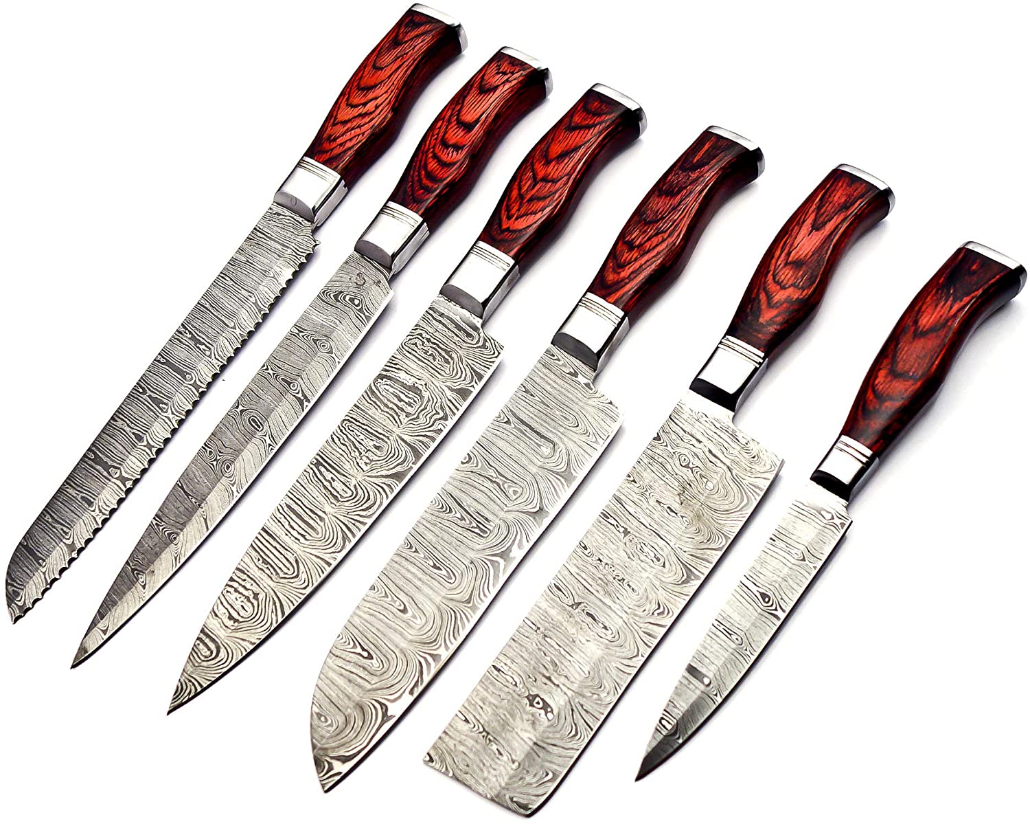 Custom Handmade Hand Forged Damascus Kitchen Knives Set