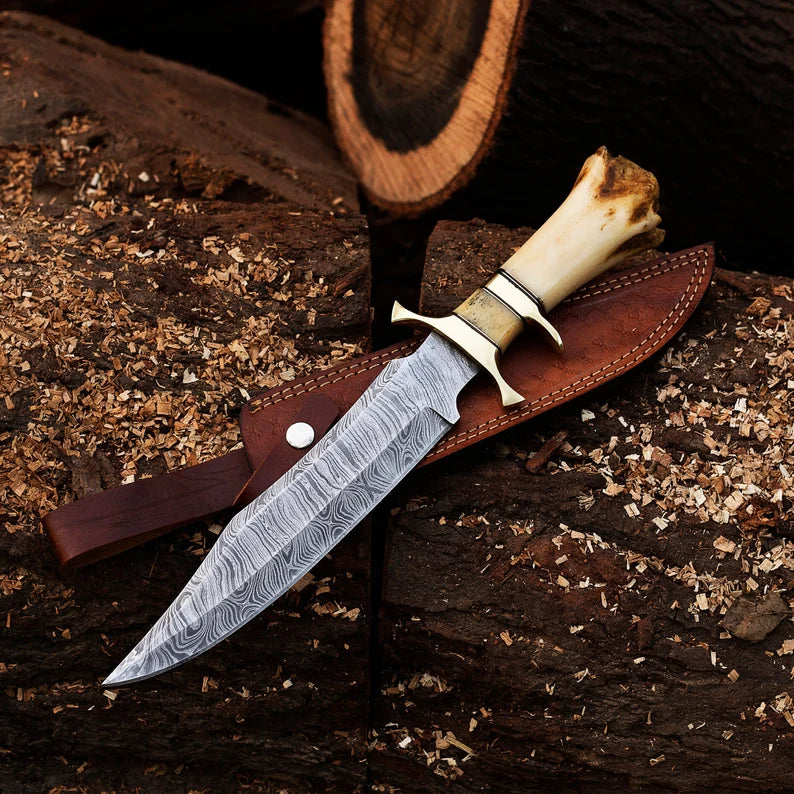 Damascus Steel Hunting Knives - Custom Handmade knife - Hand Forged Damascus steel Knife - Knife With Sheath